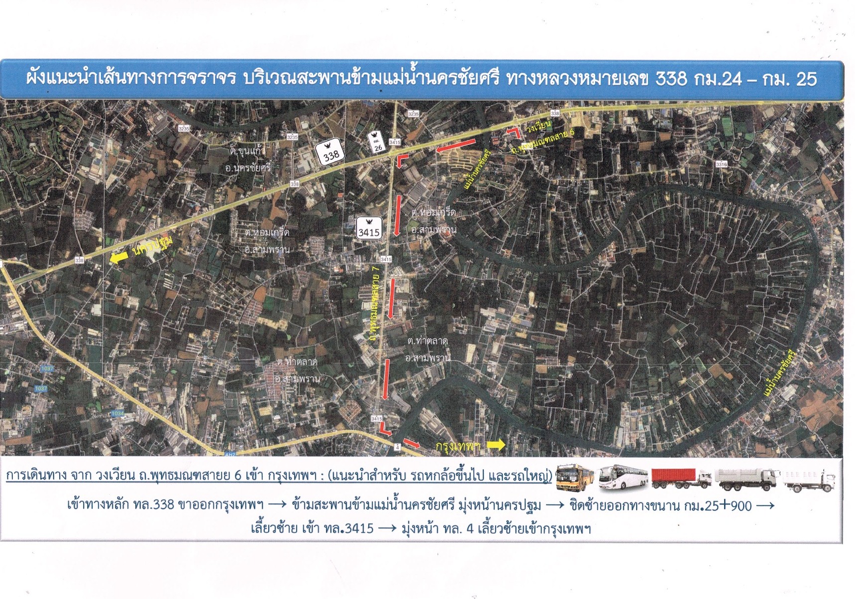 แจ้งประชาสัมพันธ์การปิดและเบี่ยงการจราจรทางกลับรถใต้สะพานข้ามแม่น้ำนครชัยศรี ฝั่งกรุงเทพฯ บนทางหลวงหมายเลข 338 (ถนนบรมราชชนนี) กม.24+500