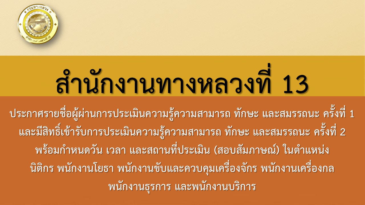ประกาศรายชื่อผู้ผ่านการประเมินความรู้ความสามารถ ทักษะ และสมรรถนะ ครั้งที่ 1 และมีสิทธิ์เข้ารับการประเมินความรู้ความสามารถ ทักษะ และสมรรถนะ ครั้งที่ 2 พร้อมกำหนดวัน เวลา และสถานที่ประเมิน (สอบสัมภาษณ์) ในตำแหน่ง นิติกร พนักงานโยธา พนักงานขับและควบคุมเครื่องจักร พนักงานเครื่องกล พนักงานธุรการ และพนักงานบริการ