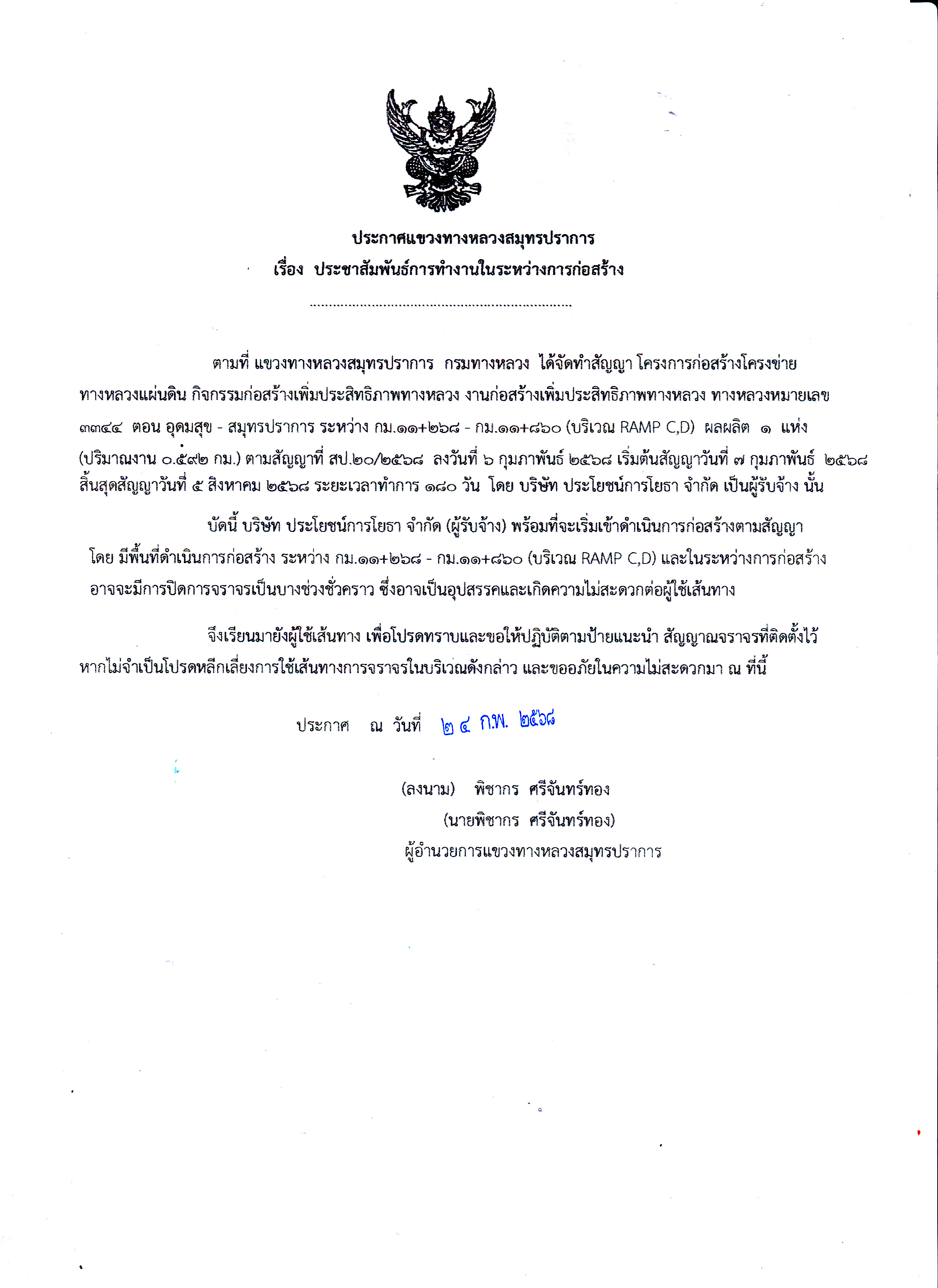 -- ตามสัญญาที่ สป.20/2568 ลงวันที่ 6 กุมภาพันธ์ 2568