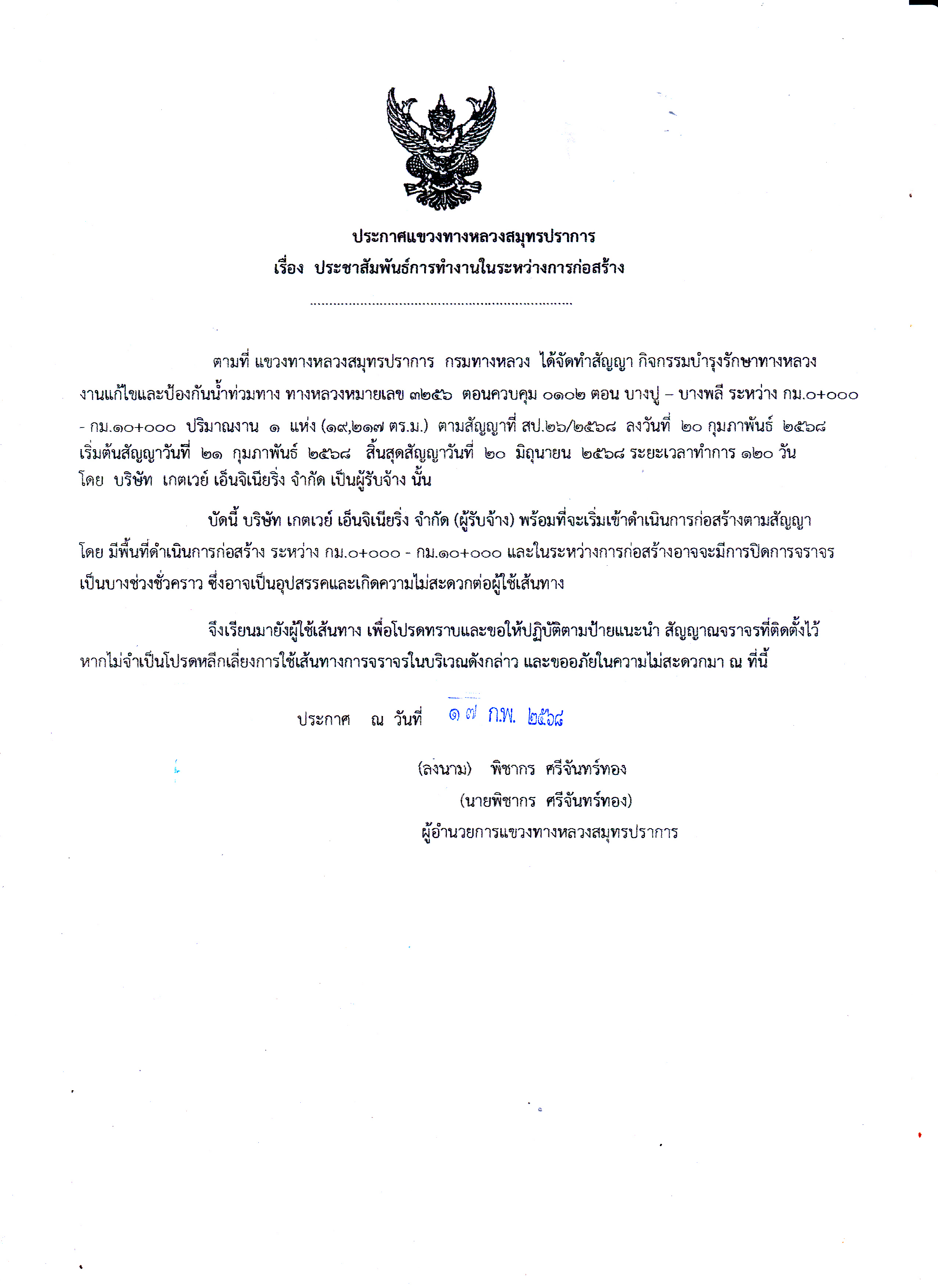 สอบถามข้อมูลเพิ่มเติมได้ที่ ผู้ควบคุมงาน 081-422-0672