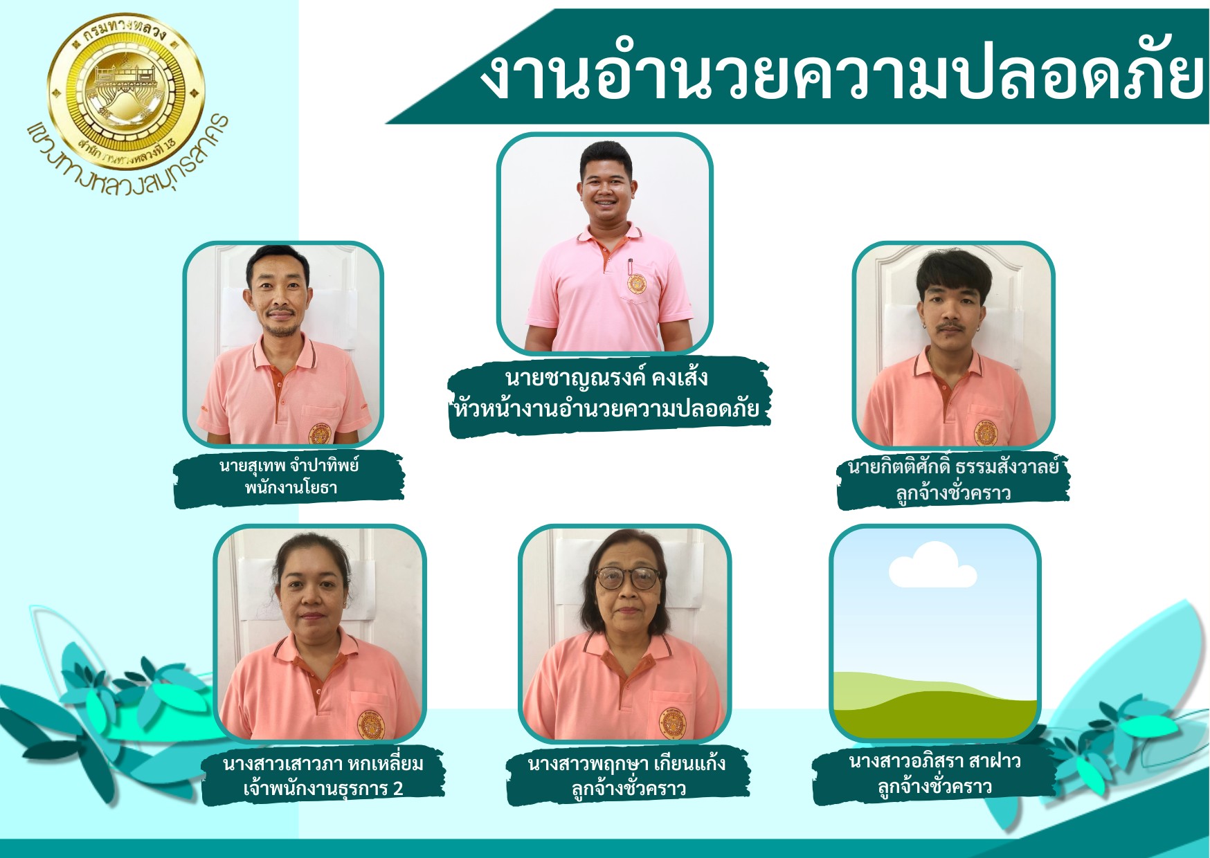 วิสัยทัศน์ : ทางหลวงปลอดภัย ใส่ใจพัฒนา ตอบสนองแก้ปัญหา โครงสร้างพื้นฐานของงานทาง